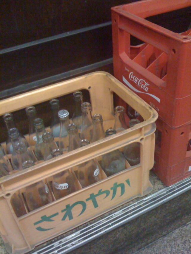 汚いというのは嘘で、「50年続いている」とお店のおかんがいっている古いお店です。こんな懐かしい「さわやか」を自分で冷蔵庫から出してグラスに注ぐ・・・。みょーに癒されてしまいました。